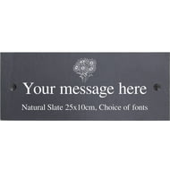 Personalise this Flower Motif Slate Sign with 2 lines of text and a selection of fonts choices.