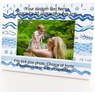Personalised Wooden Photo Frame 4x6" with Nautical Blue Pattern.