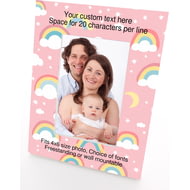 Personalised Wooden Photo Frame 4x6" with Pink Rainbows.