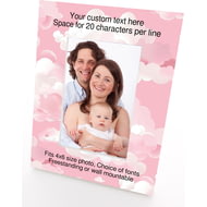 Personalised Wooden Photo Frame 4x6" with Pink Clouds.