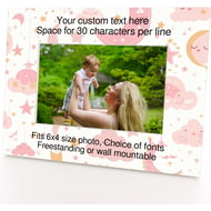 Personalised Wooden Photo Frame 4x6" with Pink Moon and Cloud Pattern.