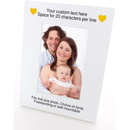 Personalise this Wooden Photo Frame with 2 lines of a text above the photo of up to 25 characters and 2 lines of 25 characters below the photo.