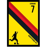 This A4 sized framed print features player figure wearing club colours, is a must for Hornets football supporters.