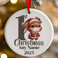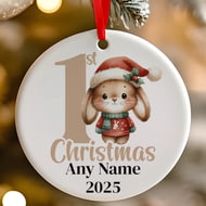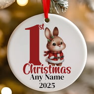 Personalise this 1st Christmas Red Bunny Rabbit with name up to 12 characters and year up to 4 characters.