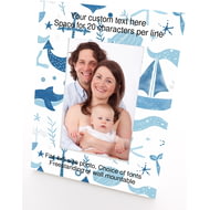 Personalised Wooden Photo Frame 4x6" with Nautical Blue Pattern.