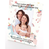 Personalised Wooden Photo Frame 4x6" with Unicorn Pattern.