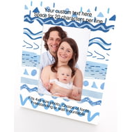 Personalised Wooden Photo Frame 4x6" with Blue Waves Pattern.