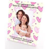 Personalised Wooden Photo Frame 4x6" with Pink Hearts.