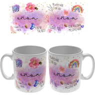 This colourful 11oz ceramic mug features a watercolour design featuring various flowers, butterflies, hearts, rainbows…