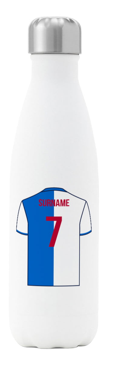 Personalised Blackburn Rovers Shirt Insulated Water Bottle - 500ml - White