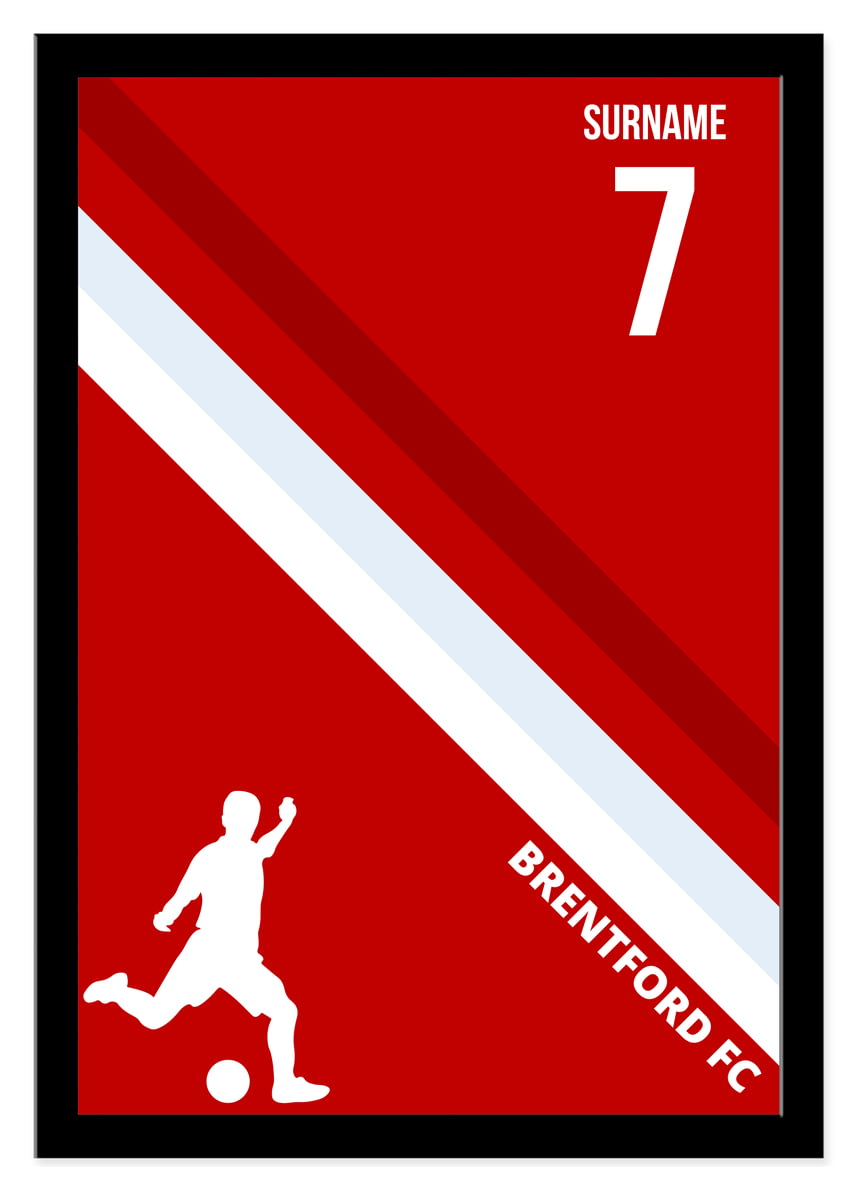 This A4 sized framed print features player figure wearing club colours, is a must for Brentford football supporters.