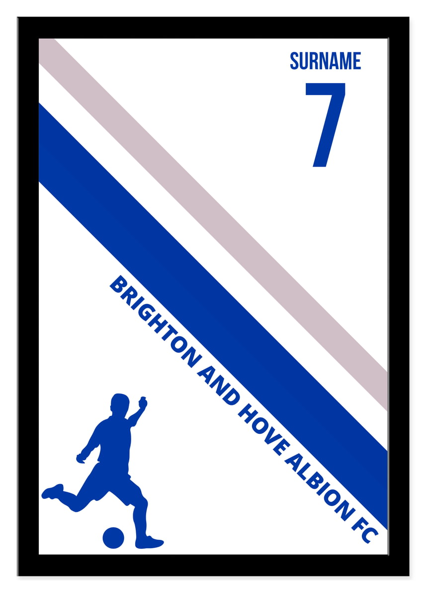 Wording "Brighton and Hove Albion FC" is fixed text, a must have gift for any Seagulls fan.
