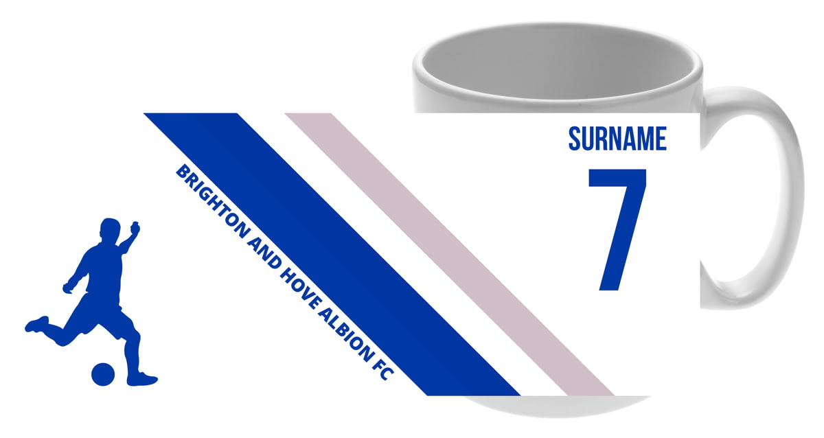 This mug for Brighton fans can be personalised with a surname up to 12 characters and shirt number.