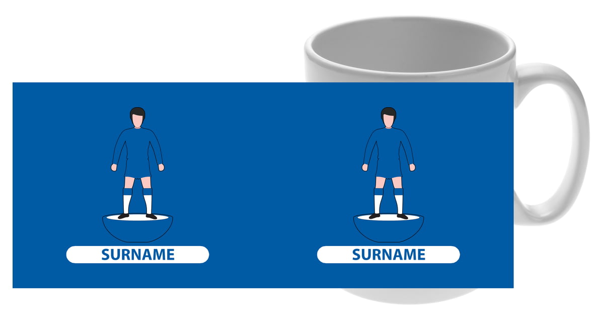 The mug features player wearing club colours, below you can personalise with a name up to 12 characters.
