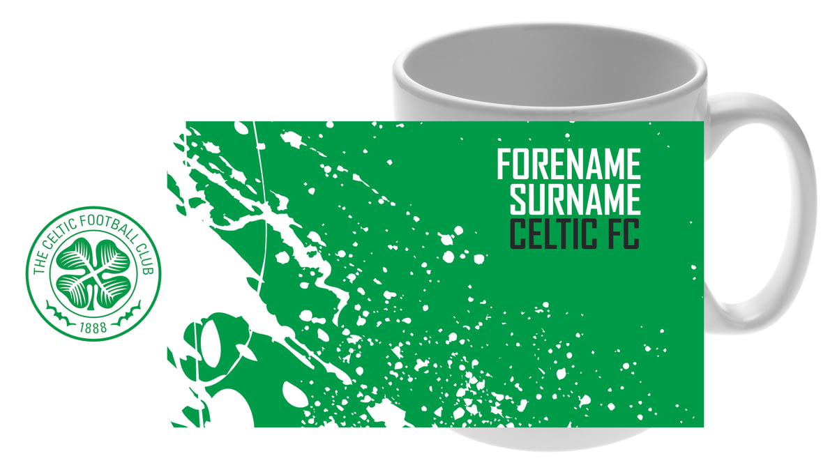 This official licensed mug features a spatter effect on one side and club crest on the other, a must have gift for any proud Celtic fan.