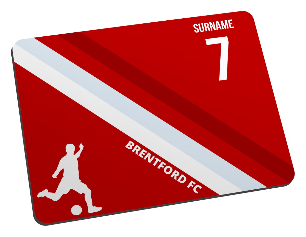 This mouse mat is a must for Brentford football supporters can be personalised with a surname up to 12 characters and shirt number.