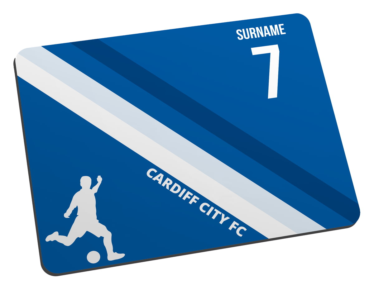 This mouse mat is a must for Cardiff City football supporters can be personalised with a surname up to 12 characters and shirt number.