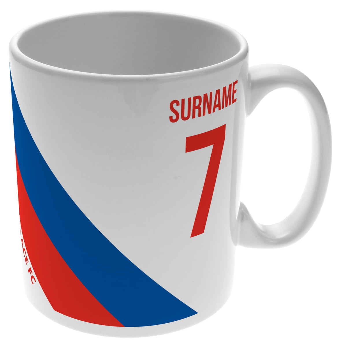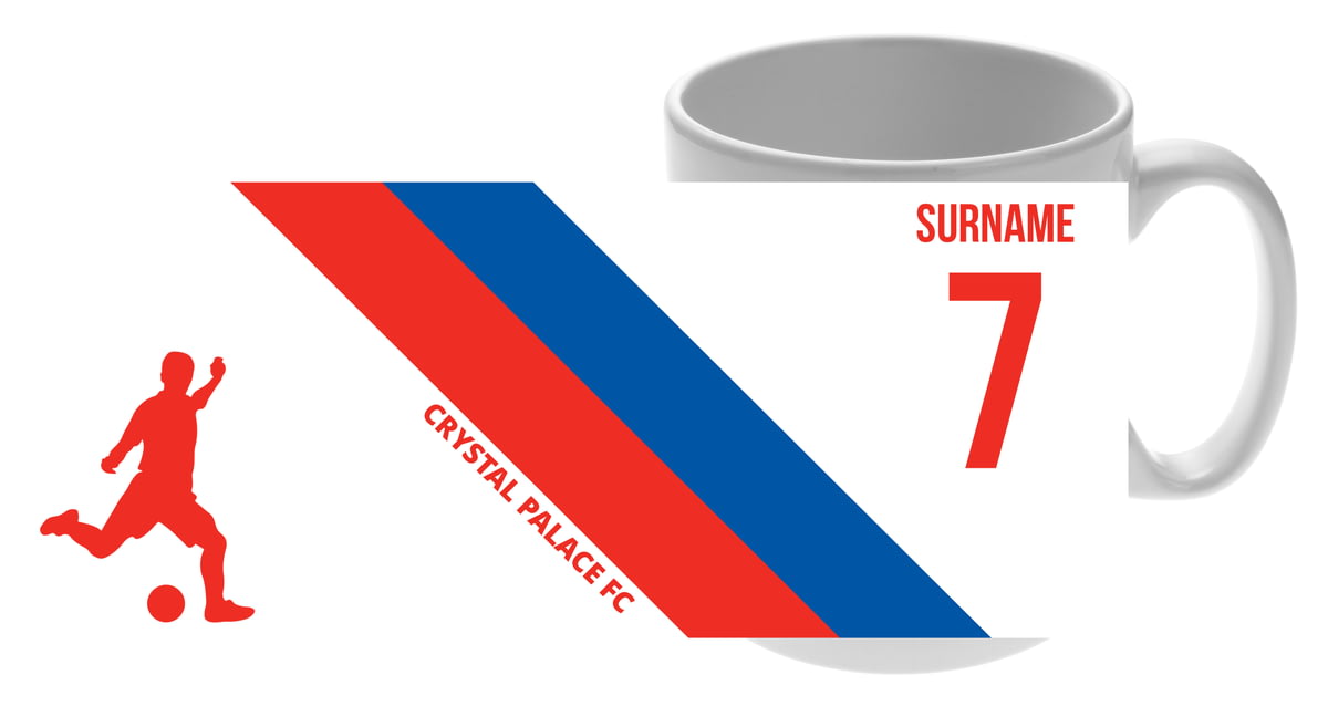 This mug for Crystal Palace fans can be personalised with a surname up to 12 characters and shirt number.