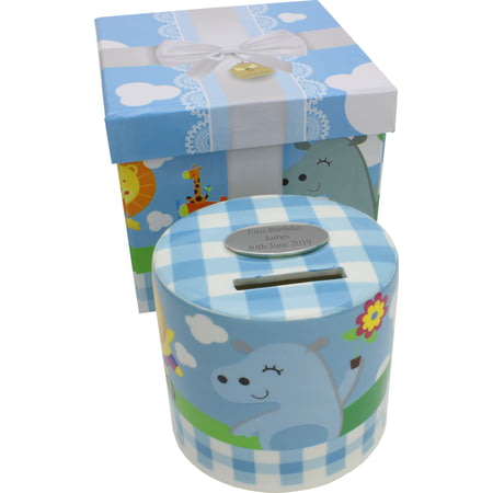 Personalised Engraved Blue Animal Patterned Ceramic Money Box