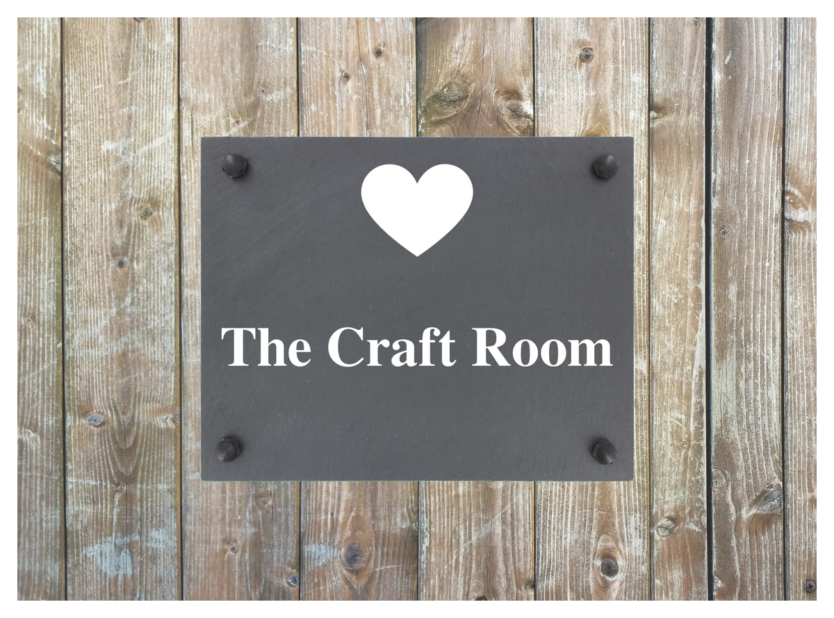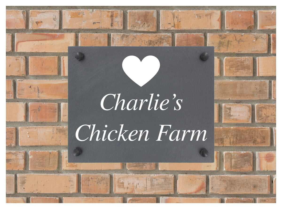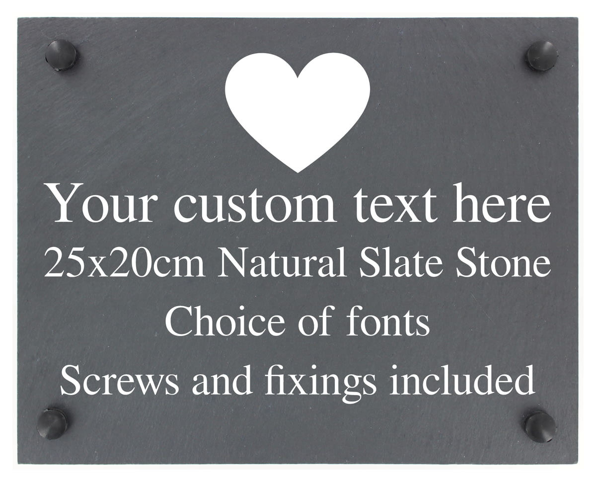 Personalised Heart Motif Slate Plaque/Sign With Wall Fixings - 25x20cm - Garden, Shed, House Sign