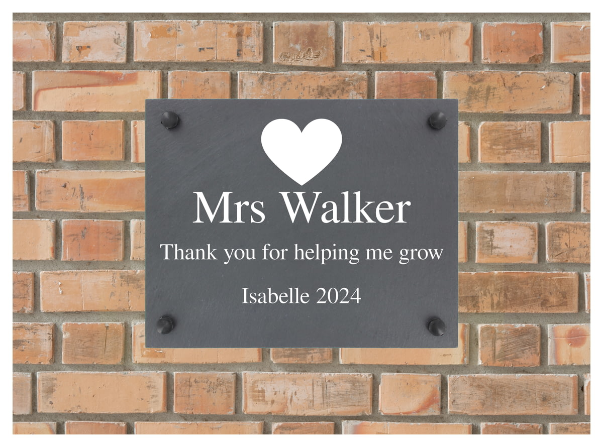 Personalise this Heart Motif Slate Sign with 2 lines of text and a selection of fonts choices.