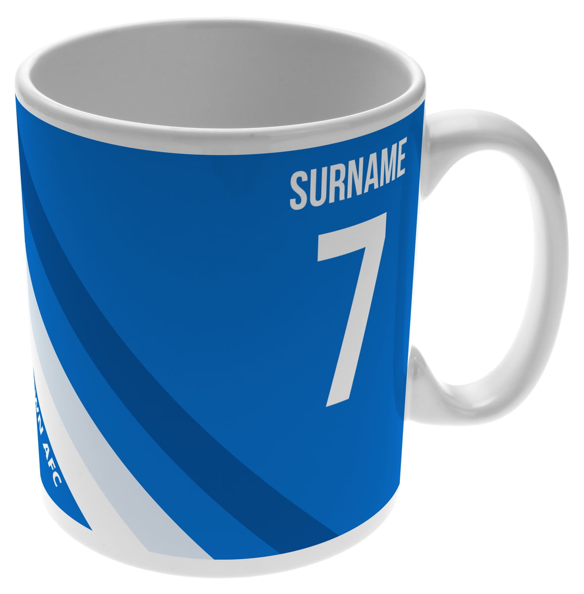 This mug for Huddersfield Town fans can be personalised with a surname up to 12 characters and shirt number.
