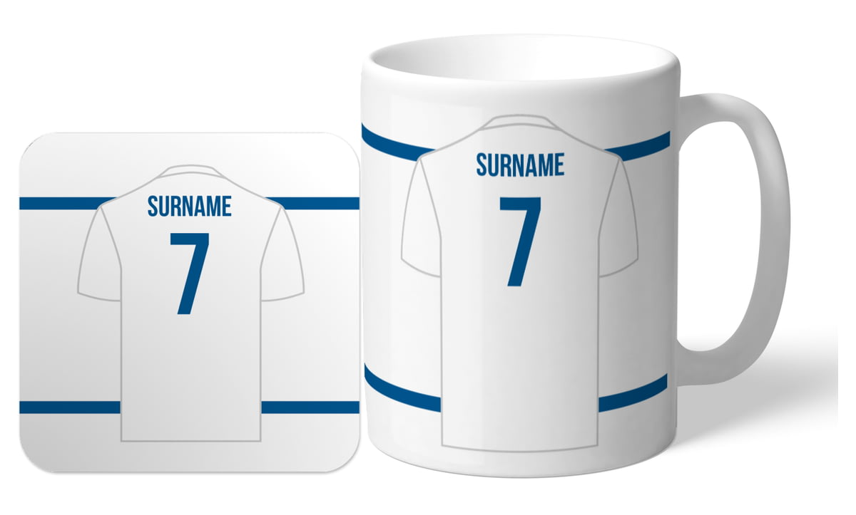 This mug for Leeds United fans features team shirt, which can be personalised with a name up to 12 characters and number (1-99 only), also includes coaster which is personalised with the same name and number.