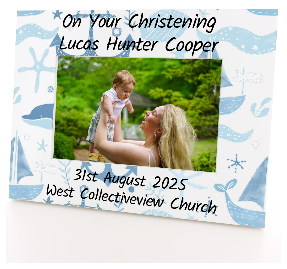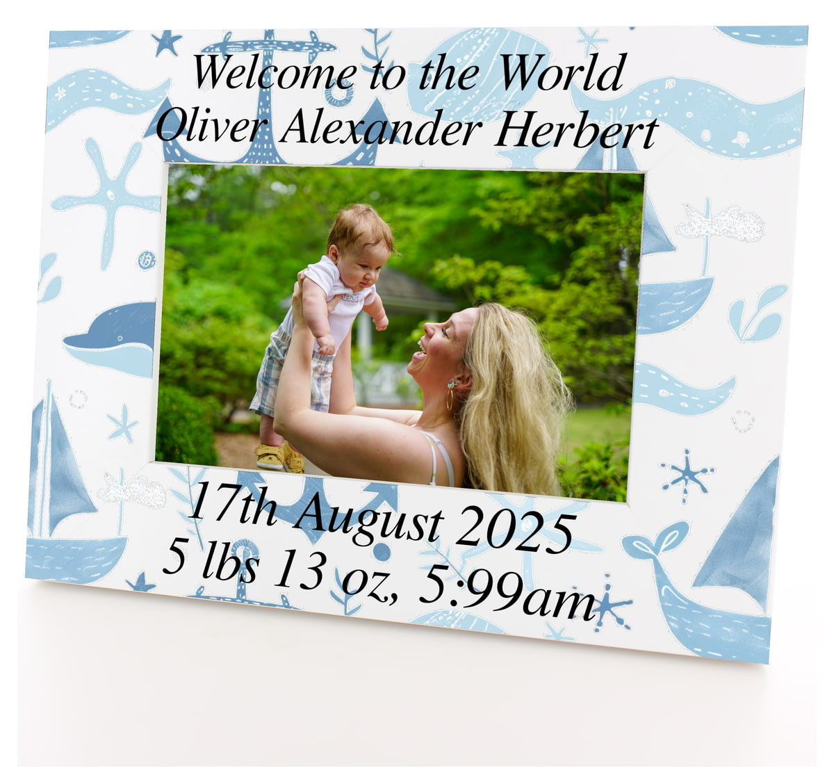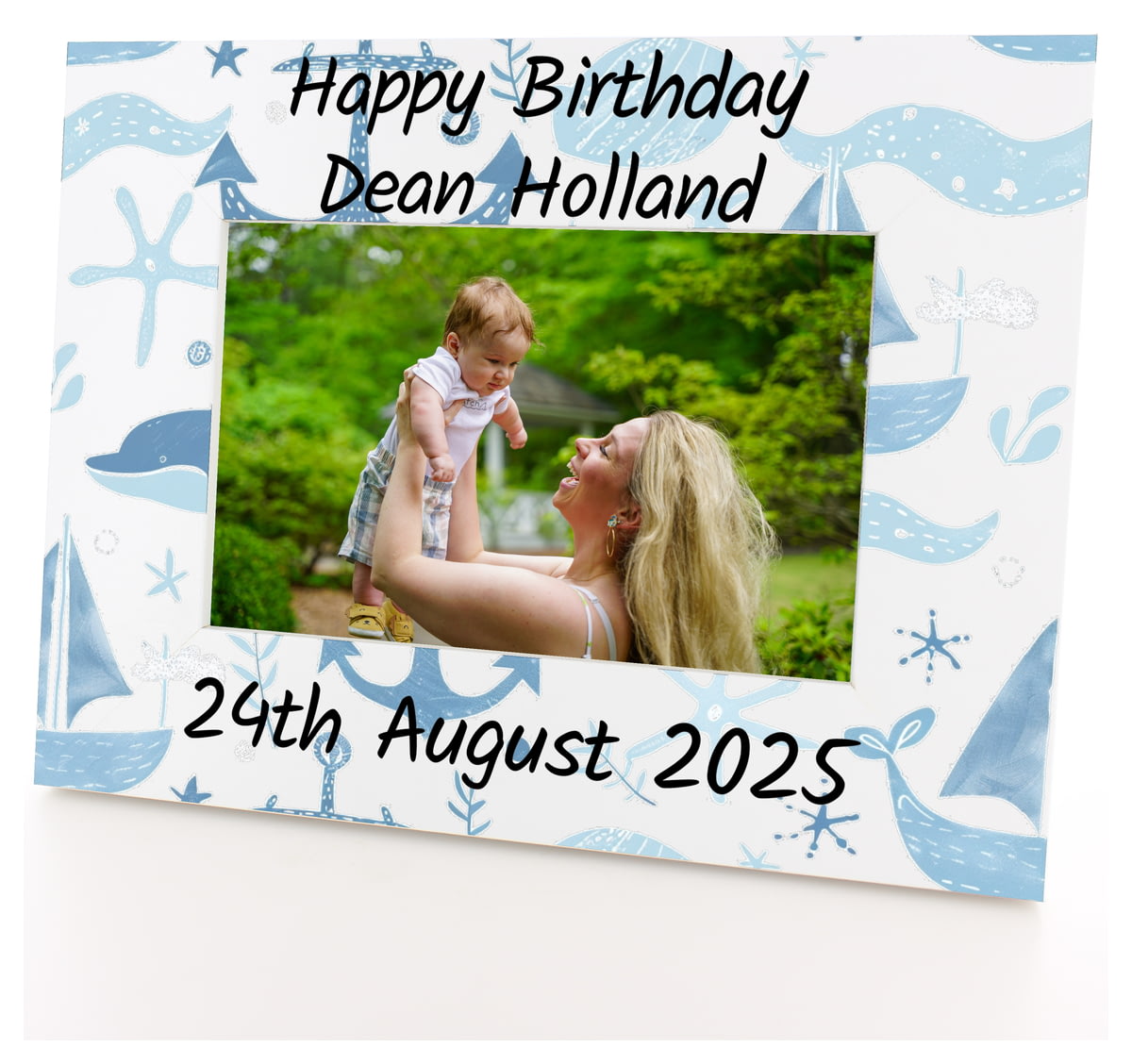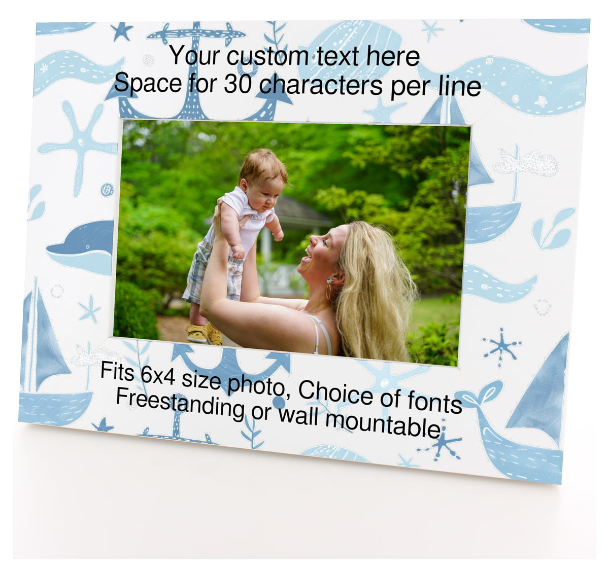 Personalised Nautical Blue Pattern 6x4" Wooden Landscape Photo Frame