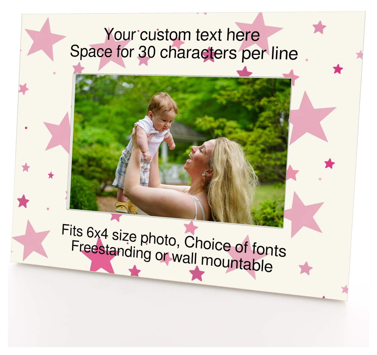 Personalised Pink Stars Pattern 6x4" Wooden Landscape Photo Frame