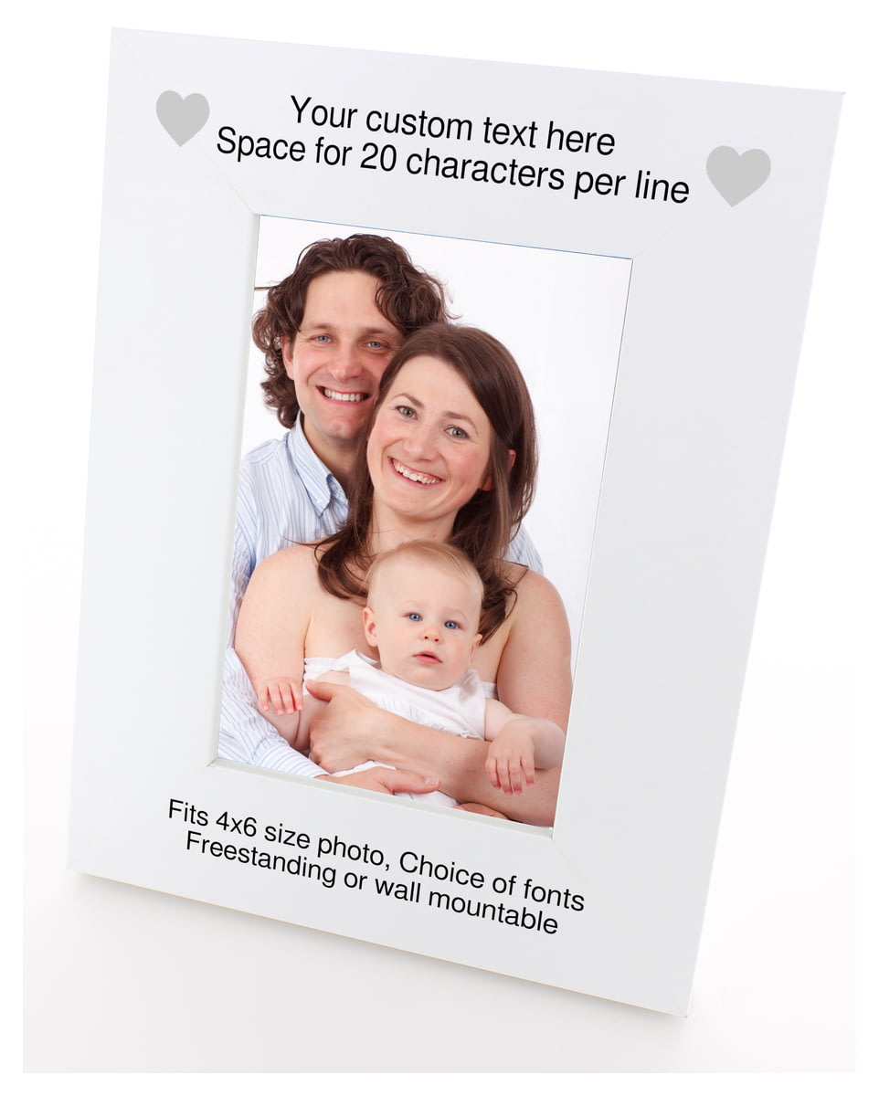 Personalised Silver Heart 4x6" Wooden Portrait Photo Frame