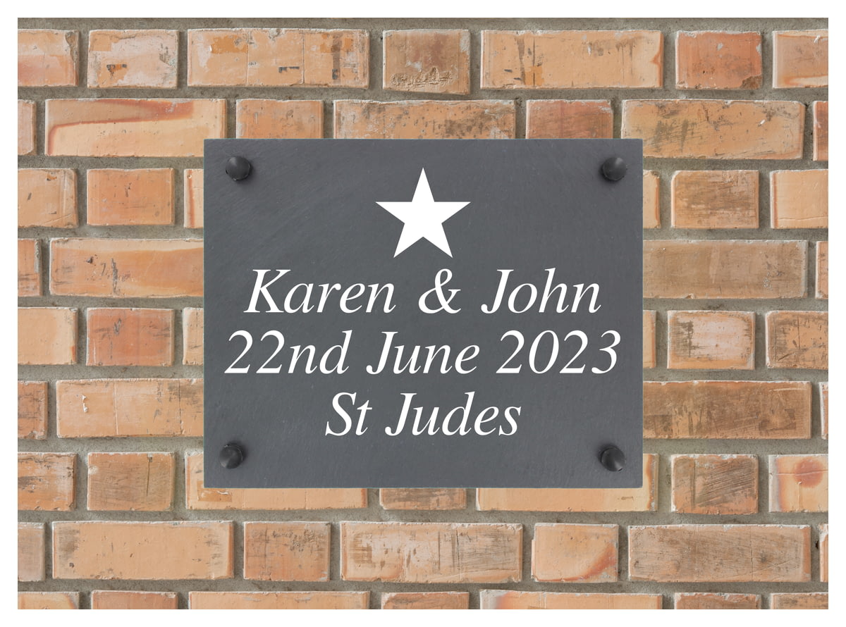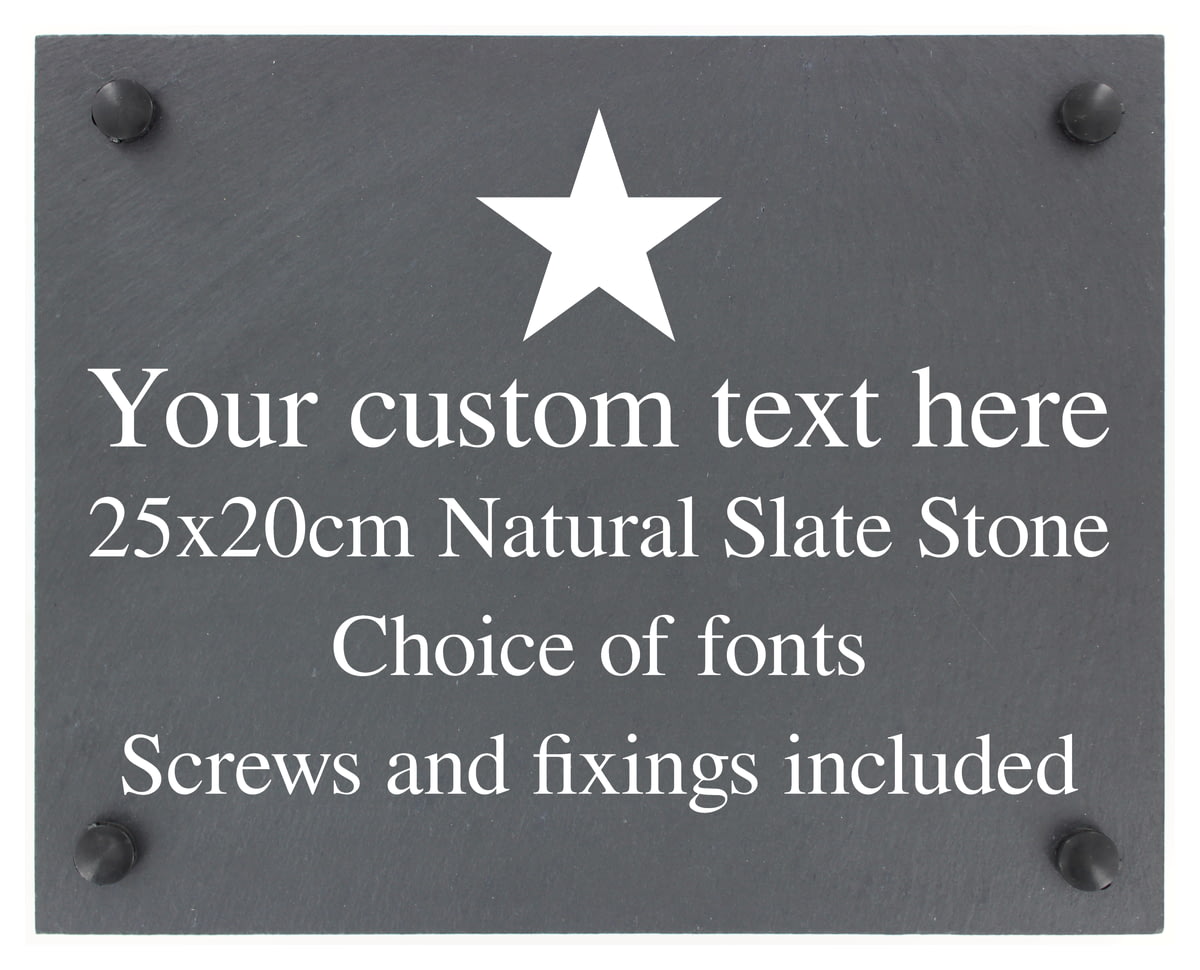 Personalised Star Motif Slate Plaque/Sign With Wall Fixings - 25x20cm - Garden, Shed, House Sign