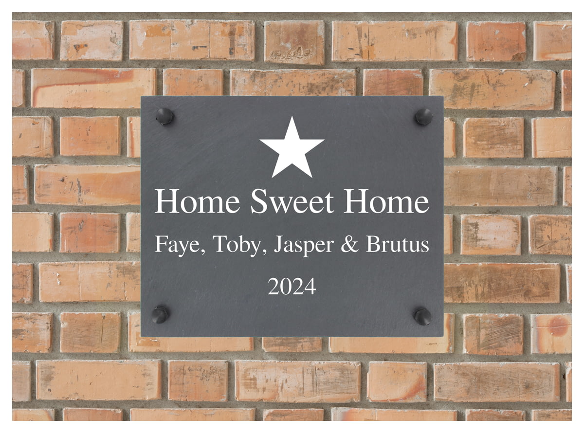 Your chosen message is printed in bright white onto the slate and will not fade or wash off, suitable for indoor or outdoor use.