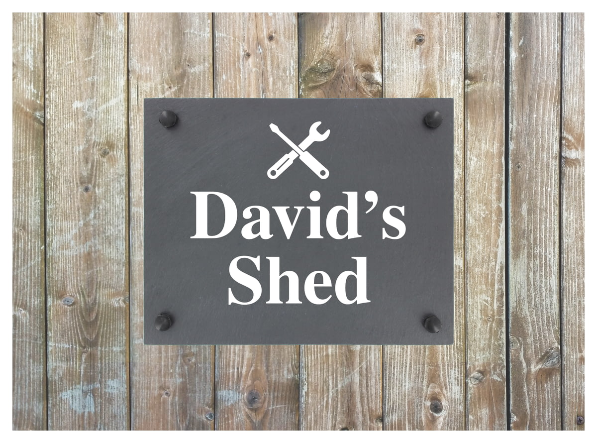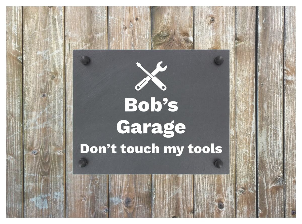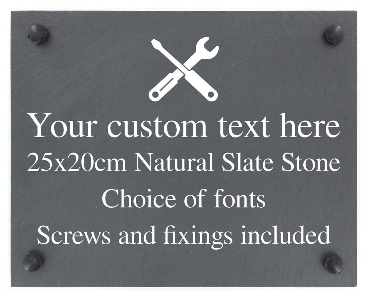 Personalised Tool Motif Slate Plaque/Sign With Wall Fixings - 25x20cm - Garden, Shed, House Sign