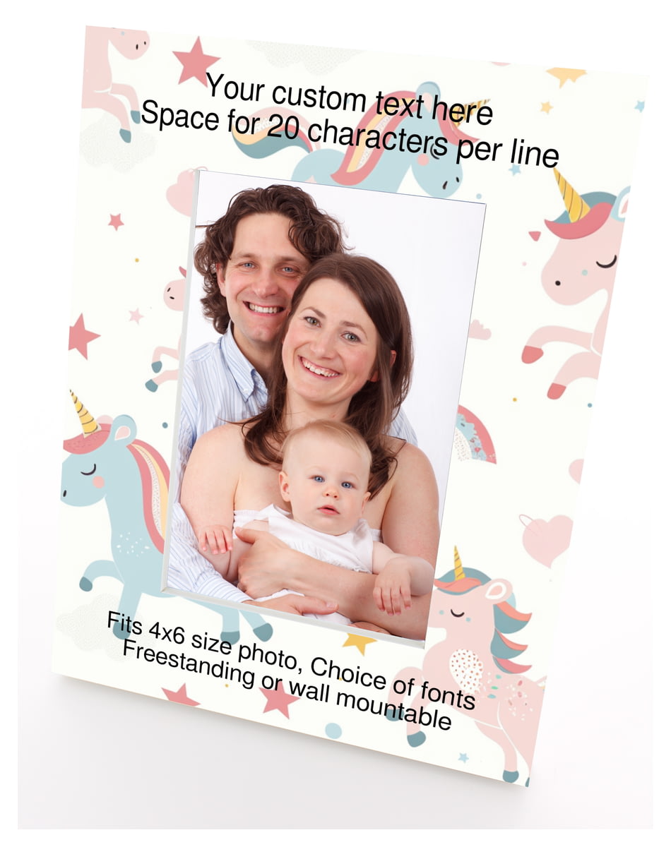 Personalised Wooden Photo Frame 4x6" with Unicorn Pattern.