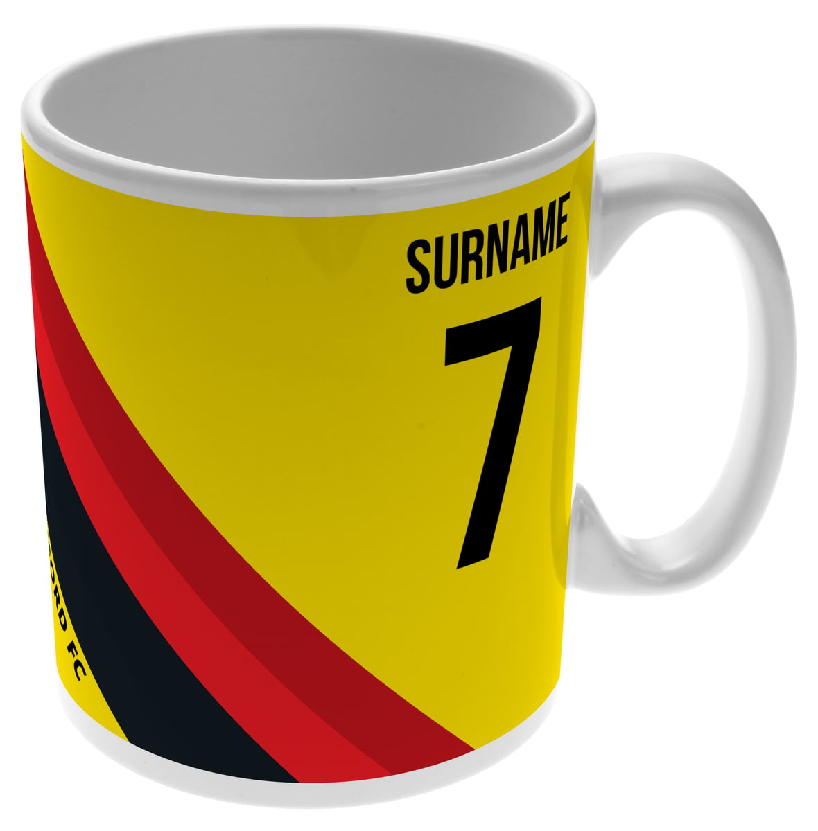 This mug for Watford fans can be personalised with a surname up to 12 characters and shirt number.