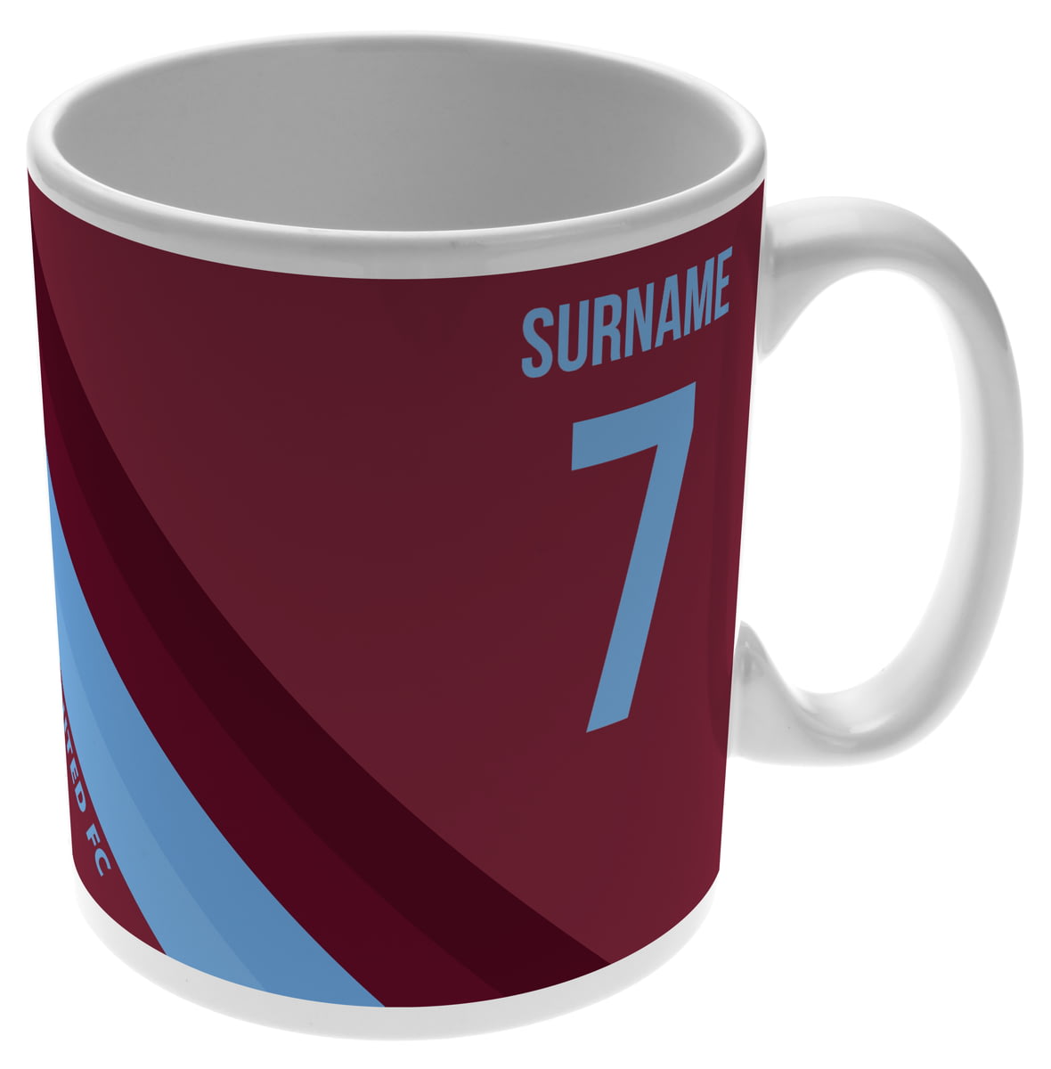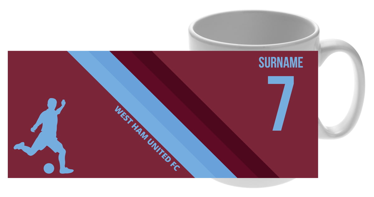 This mug for West Ham United fans can be personalised with a surname up to 12 characters and shirt number.